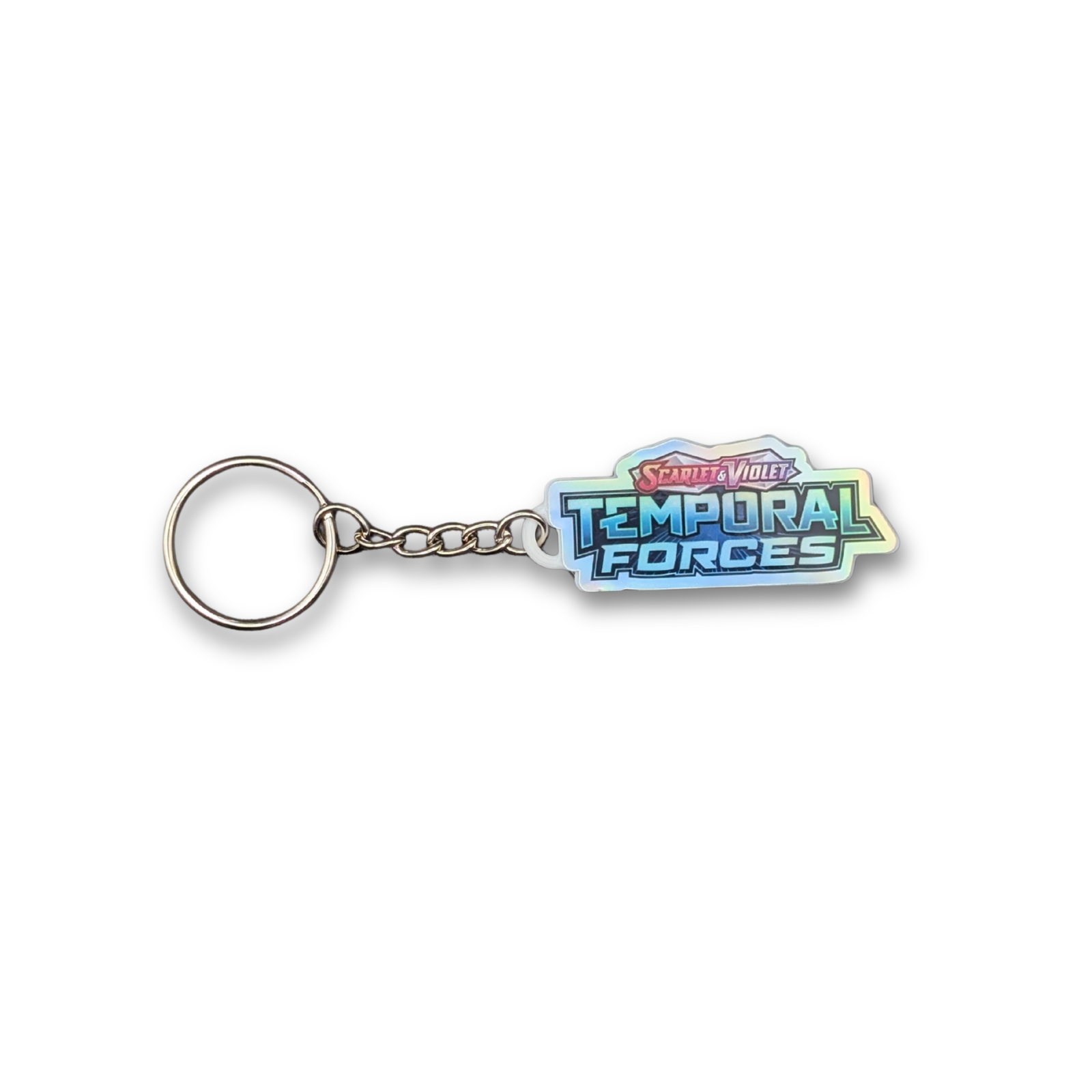 Upgrade your Pokemon Temporal Forces binder with our holographic binder tag keychain. This essential accessory features a custom shaped keychain and a holographic set logo, appealing to both collectors and trainers. Easily attach it to your binder’s zipper or strap for a seamless addition.